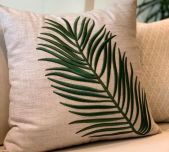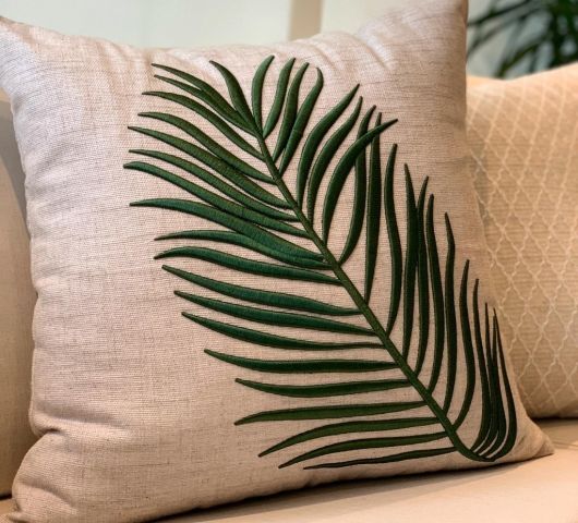 ALMOFADA BORDADA FOLHA VERDE (QUADRADA)